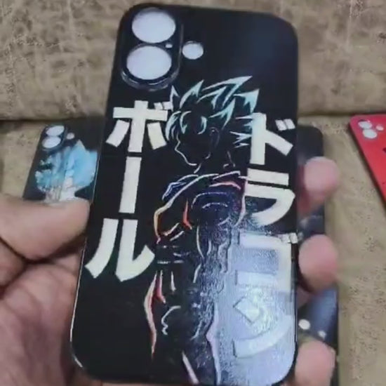 A sleek and artistic tribute to Dragon Ball Z, this phone case showcases Goku's silhouette against a backdrop of bold Japanese characters. A minimalist yet powerful design for true fans.