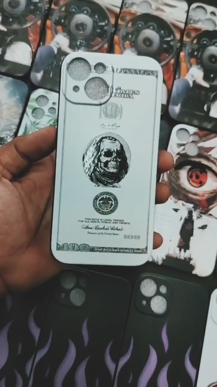 Turn currency into a canvas of rebellion with the Skull Dollar Bill Phone Case. Featuring a haunting reimagining of the classic $100 bill, this bold design replaces Benjamin Franklin's iconic portrait with a skeletal version—blending themes of wealth, mortality, and street-style attitude. The crisp cream background with authentic-looking money details contrasts sharply with the ominous skull, making this case a standout for anyone who walks the line between luxury and punk.